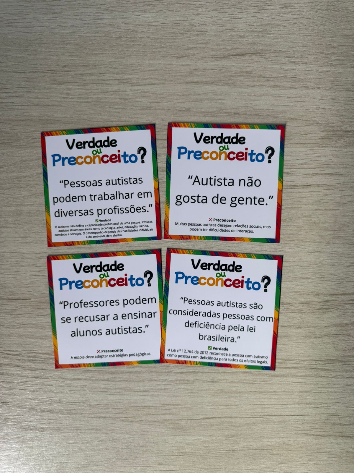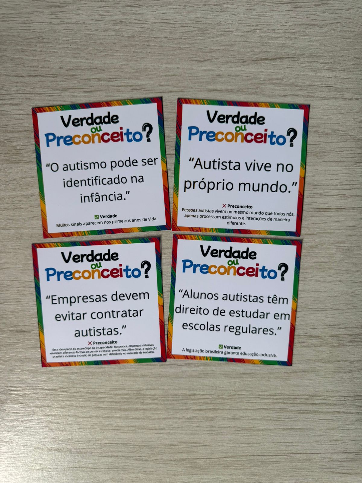 Um recurso pedagógico dinâmico, reflexivo e atual que convida os alunos a analisarem frases comuns do cotidiano e identificarem se são verdades ou preconceitos sobre o autismo.