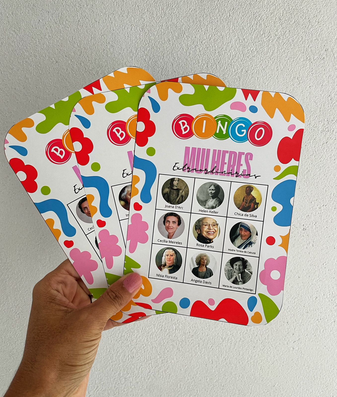 O Bingo Mulheres Extraordinárias é um material pronto para imprimir que une diversão e conhecimento, ajudando os alunos a conhecerem mulheres inspiradoras que marcaram a história.