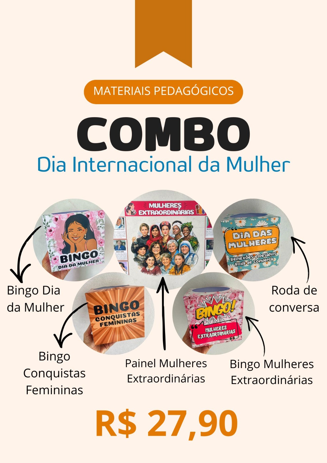 – 28 fichas com mulheres extraordinárias para sorteio.