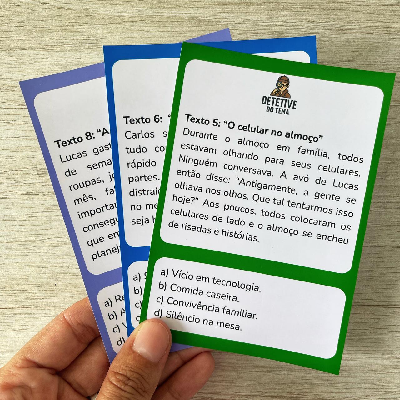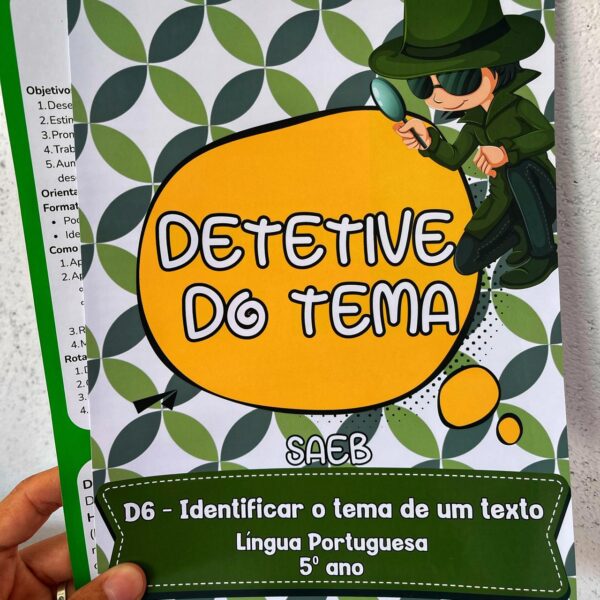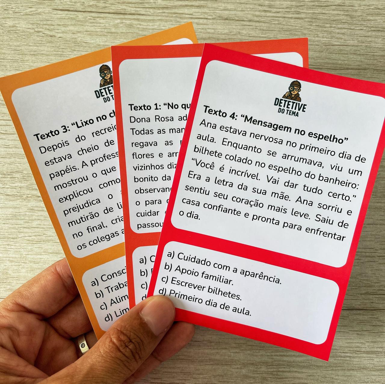 O jogo Detetives do Tema foi especialmente criado para desenvolver, de forma lúdica e eficaz, a habilidade de identificar o tema principal de diferentes tipos de texto, atendendo diretamente ao Descritor 6 de Língua Portuguesa do 5º ano.