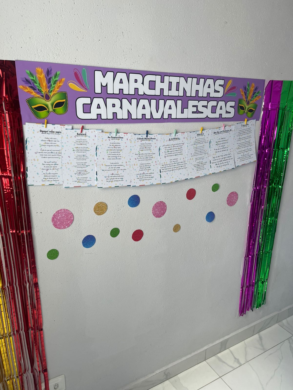 Ideal para mural, varal das marchinhas ou ambientação da sala, criando clima carnavalesco e acolhedor.